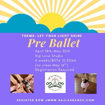- 10:30 am Pre Ballet kids: New Session starts April 18th