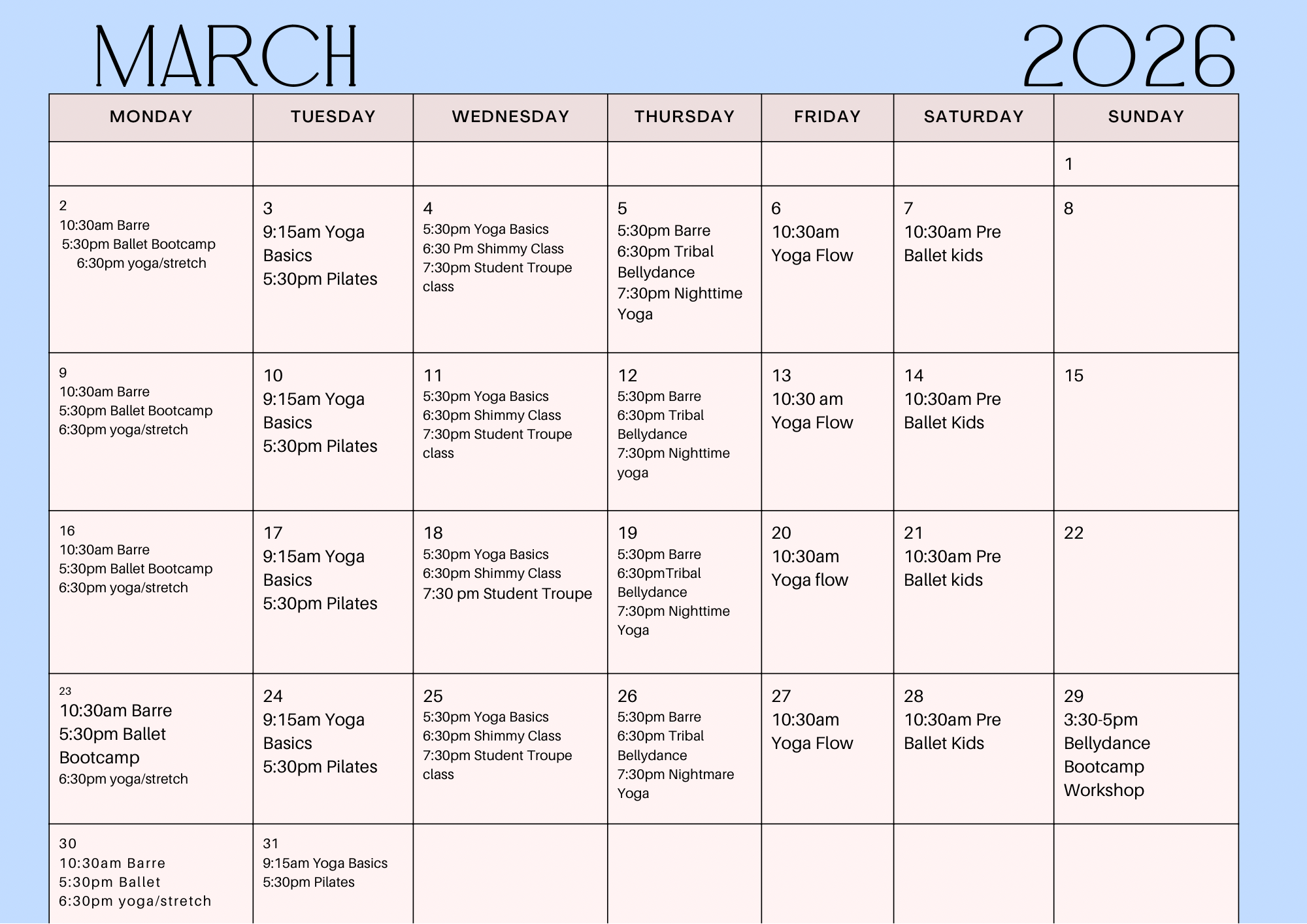 Schedule for March 2026 Get a Jump start & Register here:https://najlasdance.com/shop-2/